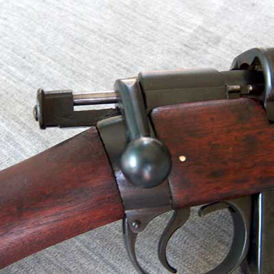 L'otturatore degli Enfield è caratterizzato da una testina amovibile con un estrattore ad uncino che lavora lateralmente. Questo particolare rende possibile il tiro a colpo singolo senza rischi per l'estrattore. |
