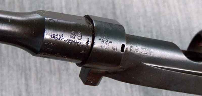 | Tolto il copricanna è anche possibile leggere la data di produzione della canna, che si trova sulla sinistra della base insieme con i vari punzoni di ispezione. | ||||