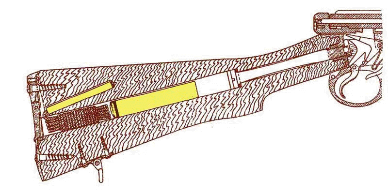 | In genere le armi ex ordinanza hanno bisogno di un accurato ciclo di pulizia, per eliminare il grasso di protezione ormai indurito e controllare che le parti metalliche nascoste dalla calciatura non presentino inizi di corrosione. | ||||