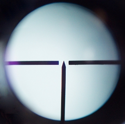 Con la taratura ideale per una distanza scelta il reticolo deve essere perfettamente centrato rispetto al campo visivo e i colpi sparati dovrebbero andare a segno nel punto mirato, esattamente nel punto indicato dalla punta del post verticale.